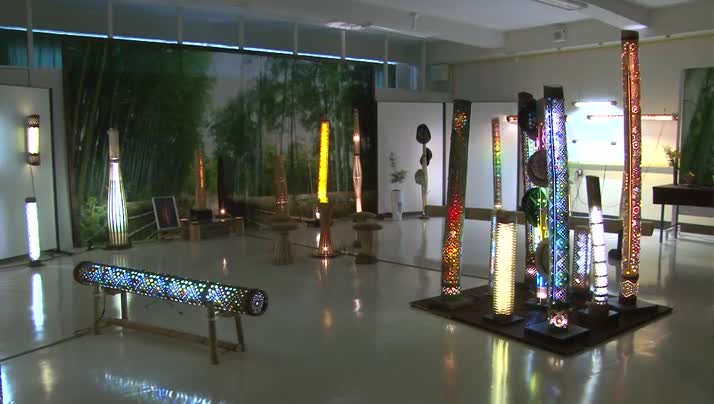 竹から漏れる柔らかい光が印象的な照明作品の展示会が、
