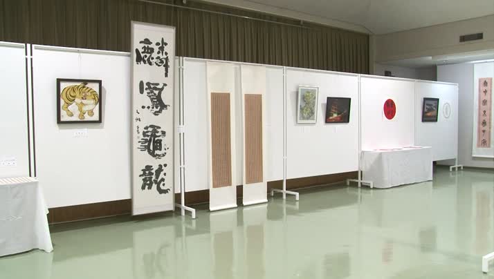 会場には中国の書画作品と荒金大琳さんら別府市美術協会員の作品