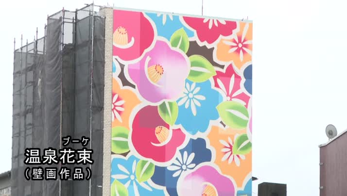 今回制作した作品「温泉花束」は建物をつかった壁画作品と