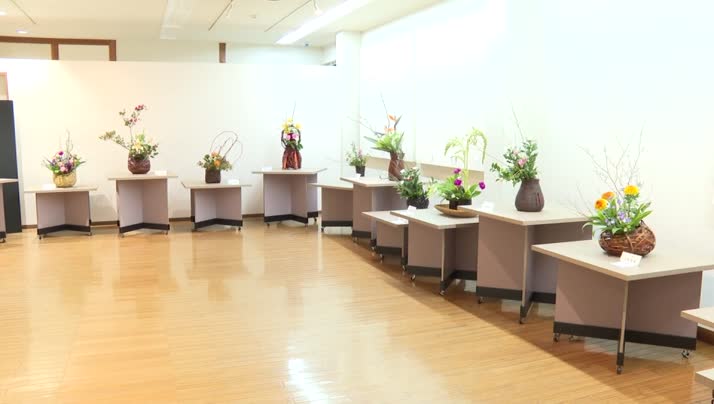 毎年夏と秋には竹の花かごに季節の花を生ける作品展を