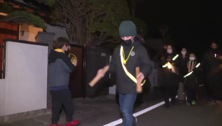 大人たちと声を合わせ、地域の人へ火の用心を呼びかけました。