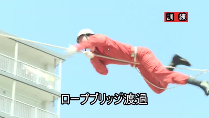 「ロープブリッジ渡過」や救助隊員2人が7メートル降下し
