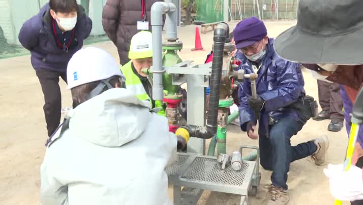水を確保するために設置されている「耐震性貯水槽」の使い方を確認。