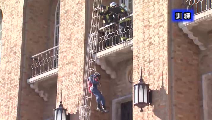 はしごやロープ、はしご車を使って窓と屋上から救出していました。
