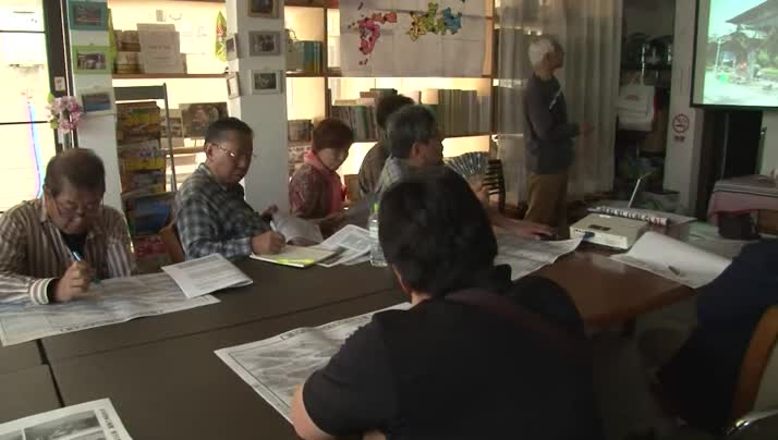 続いて、一行は町に出て、明治時代に作られた地図を見ながら