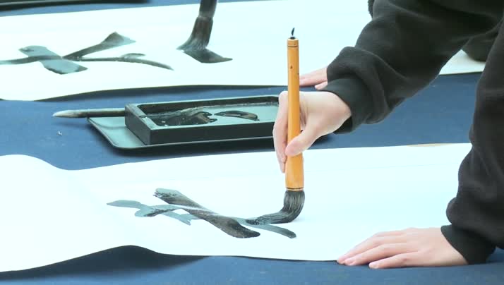 書道パフォーマンスを鑑賞していました。