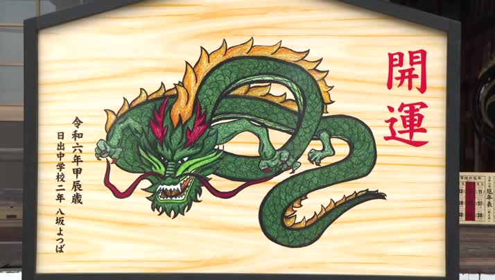 日出町の若宮八幡神社に来年の干支「辰」を描いた