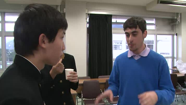 英語を使って留学生との会話を楽しんでいました。