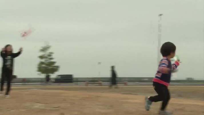 参加者は、大空に手作りの凧をあげようと会場を駆け回りました。