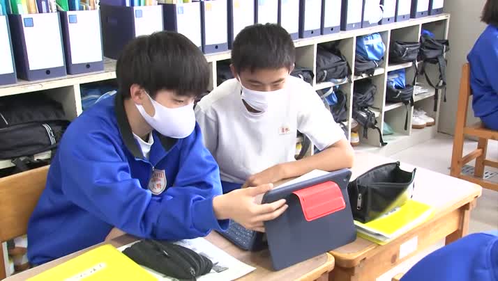 朝日中学校では、生徒一人ずつにタブレット端末が配布されていますが、
