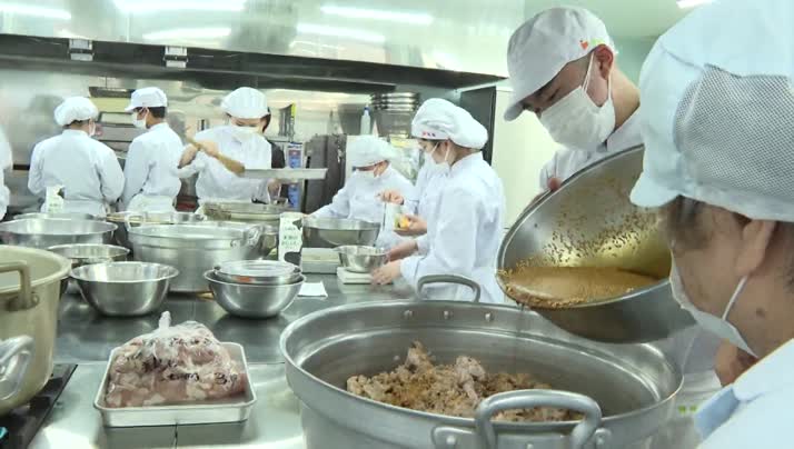 別府溝部学園高等学校では食物科の授業「総合調理実習」の一環で