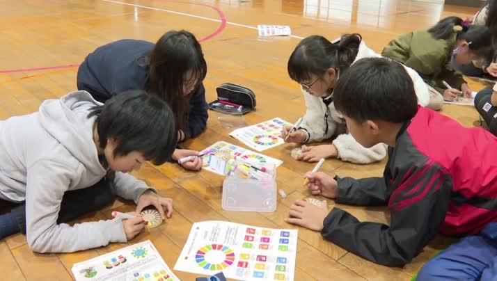 子どもたちに楽しく学んでもらおうと、SDGsのロゴにちなんだ