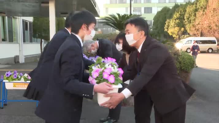 自分たちが育てたペチュニアの花15鉢を贈呈しました。