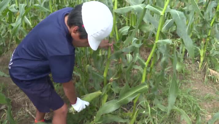 自分の背丈より大きく育ったとうもろこし畑の中に入り