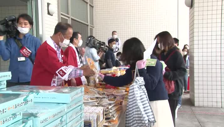 全国各地から食料や手作りマスクなどの物資が届いていました。