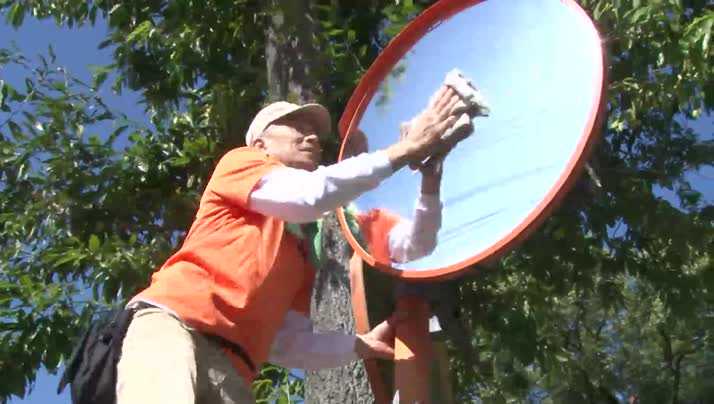 5つの班に分かれ、町内にある約80基のカーブミラーを