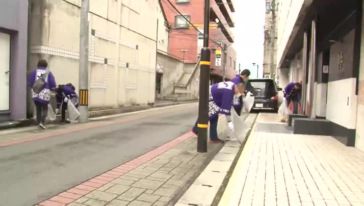 別府駅前通り、北浜通り、新宮通りに分かれてごみを拾い、