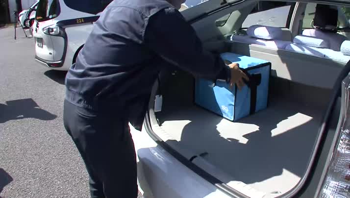この日は、車種ごとに、実際に使用する保冷バックを使って