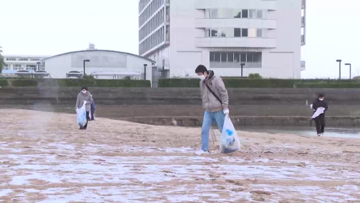 砂浜に雪が積もったこの日はおよそ30人が参加し、