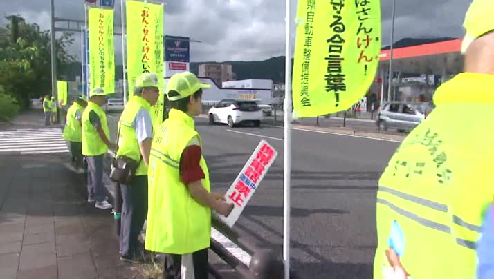 「全席シートベルト着用」や「運転中の携帯電話 禁止」などと書かれた
