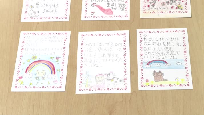 つなげレターは今年、豊岡小学校の1年生から3年生が書き、