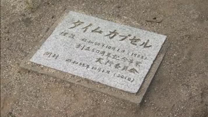 当時の児童およそ600人が思い出を詰め込んだタイムカプセルをグラウンドの一角に埋めました。