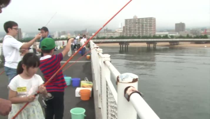 餅ヶ浜桟橋で魚釣り体験が行われました。