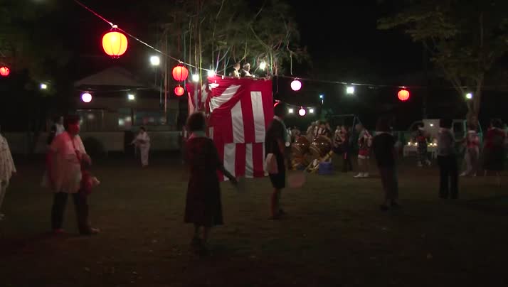 法要の後には盆踊りが行われ亀川地踊り保存会による口説きや太鼓に合わせて