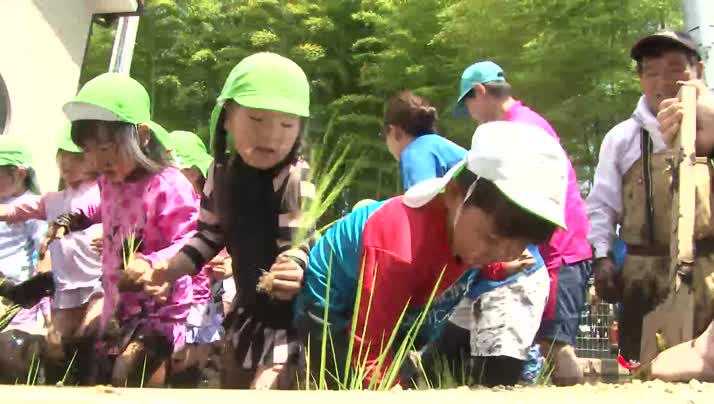 - 園児たちが田植えに挑戦!