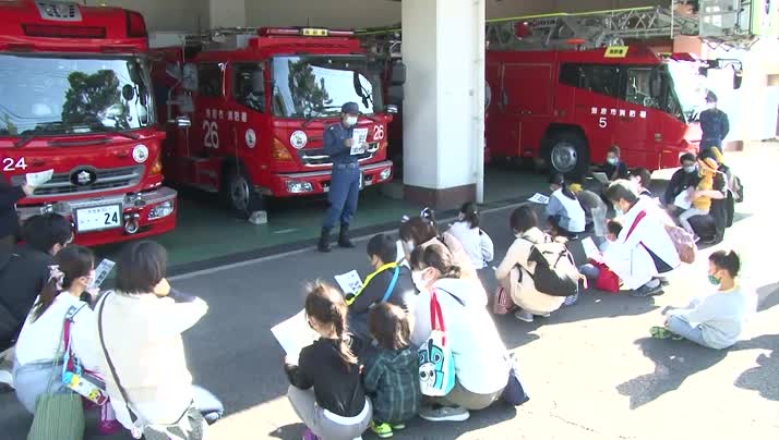 別府市消防本部を探検して消防士の仕事について学ぶ催しが