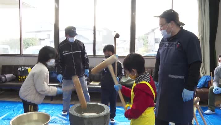 子どもたちが「1、2、3」とかけ声をかけながらつきました。