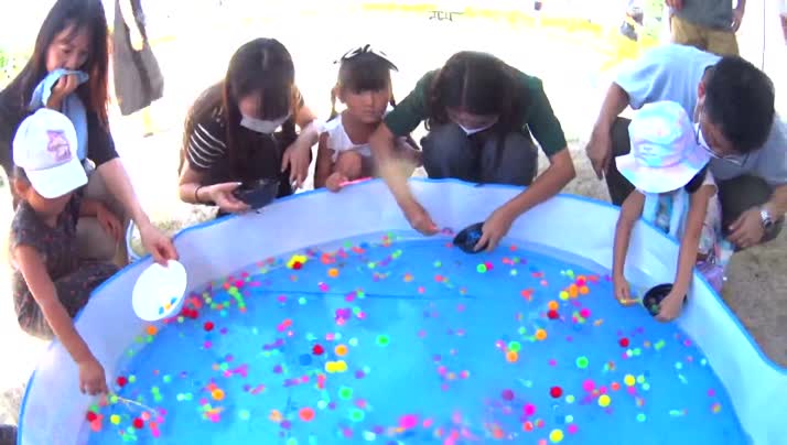 祭りでは、この他にも、水風船を投げ合う催しが行われ、