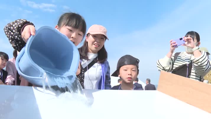 マコガレイとマダイの稚魚それぞれ100匹を海へ送り出しました。