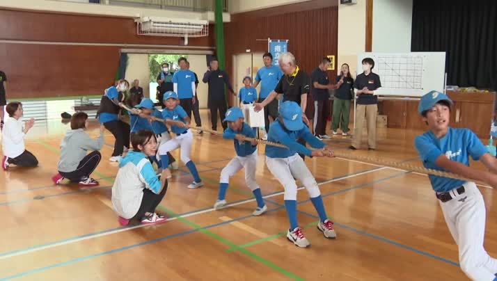 指導を基に選手らは仲間たちと力いっぱい綱を引っ張り
