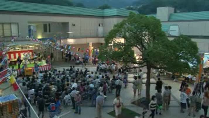 会場となる浜脇温泉広場には、