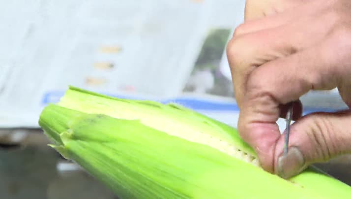 白いスイートコーン「白雪姫」の初収穫が行われました。
