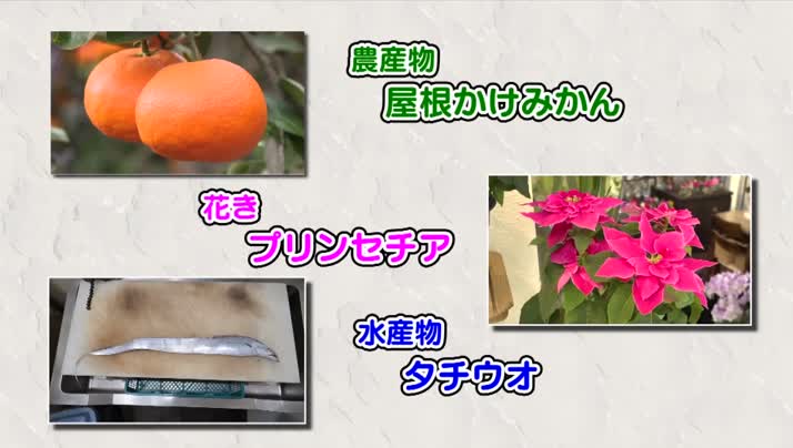 - 旬だより(屋根かけみかん・プリンセチア・タチウオ)