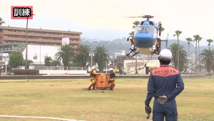 訓練には、大分県防災航空隊の隊員6人と別府市消防本部の10人が参加。