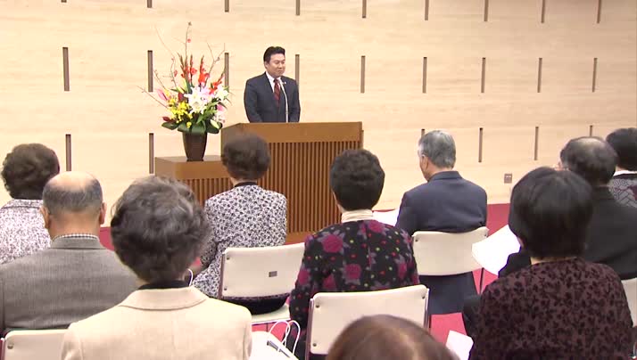 式の後、出席者は一人一人、長野市長から花を受け取り、会場を後にしました。