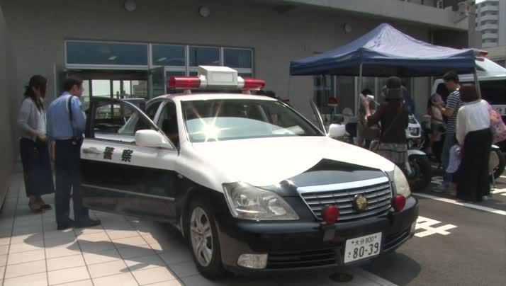 子どもたちは実際に乗車して、警察官から機能や役割について