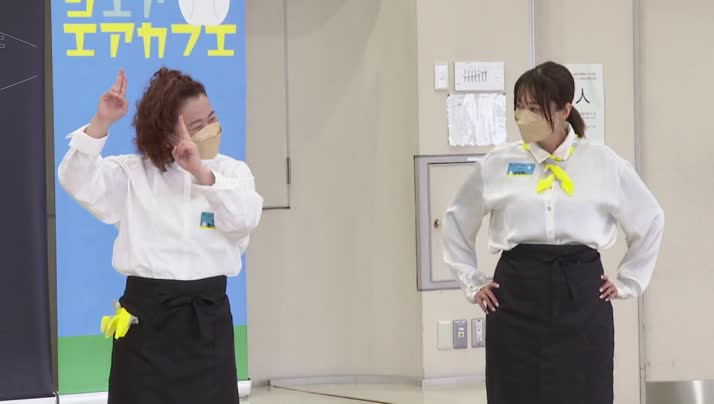 カフェ店員に扮し、架空のパフォーマンスを通じて