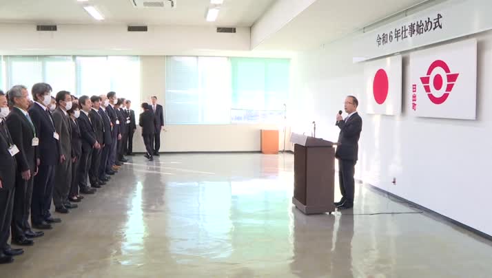 仕事始めとなり、日出町役場でも仕事始め式が行われました。