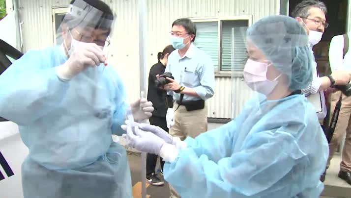 ここでの検査では、感染が疑われる人は、車に乗ったままで、