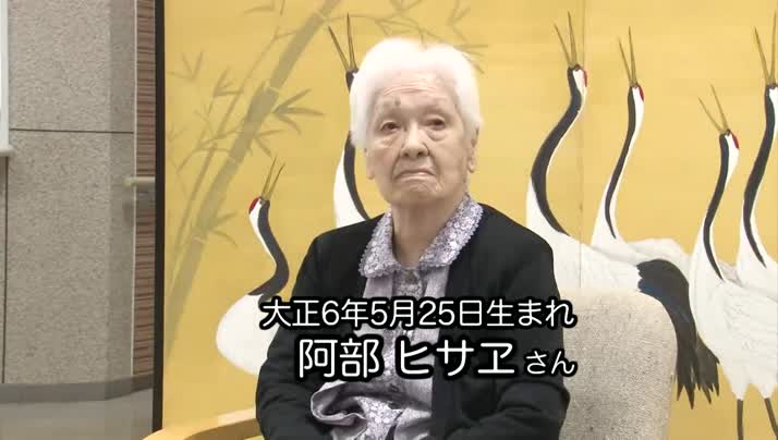 阿部ヒサヱさんは大正6年5月25日生まれ。