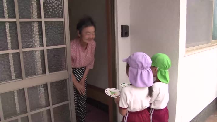 この日の午前中、原山の20世帯を訪問した園児達は、