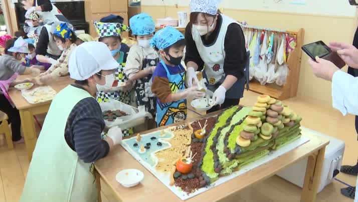 「石垣班」は、造形のベースとなる、緑のパンケーキで作られた