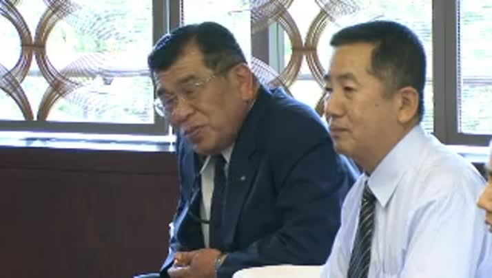 市役所を訪れたのは原尻正信校長と藤本賢司監督、