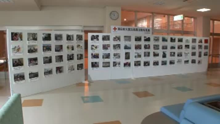 会場では日本赤十字の東日本での活動の様子をおさめた写真や