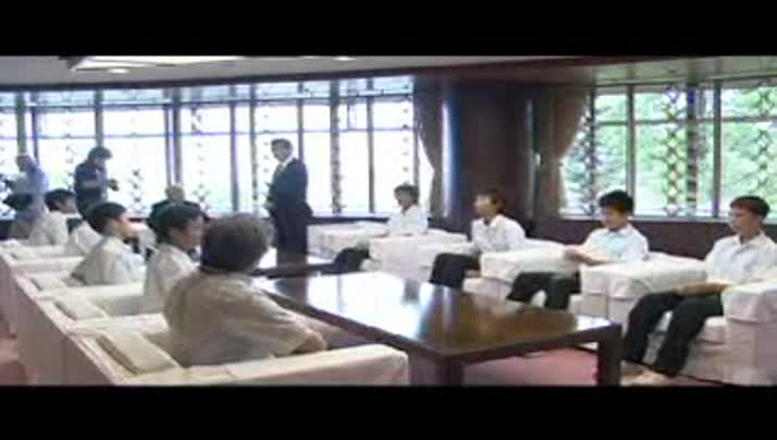 はじめに、高見 春生校長が選手を紹介し、キャプテンの和泉 貴充君が決意表明を行いました。浜田市長は、「大分の代表として頑張ってください」とエールを送り、奨励金を手渡しました。