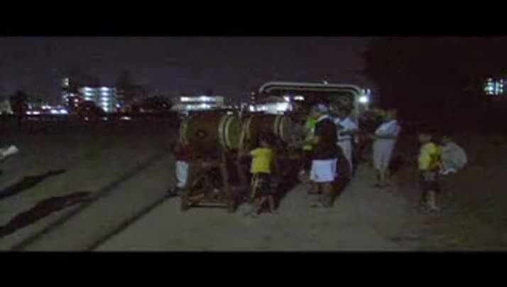 指導に当たっているのは、地区の盆踊りで長年太鼓を叩き続けている弥田 貞夫さんです。練習の最終日となった19日水曜日の夜には、石垣東4丁目から6丁目に住む小学1年生から中学3年生までの7人が参加しました。子どもたちは、弥田さんから「『ト、トンのトン』と叩くんだよ」とアドバイスを受けながら、「別府音頭」や「ヤッチキ」の音楽に合わせて、真剣に練習に励んでいました。弥田さんは、「今年の盆踊り太鼓は、子どもたちが主役です。好評なら来年も和太鼓の指導を行っていきたい」と話していました。